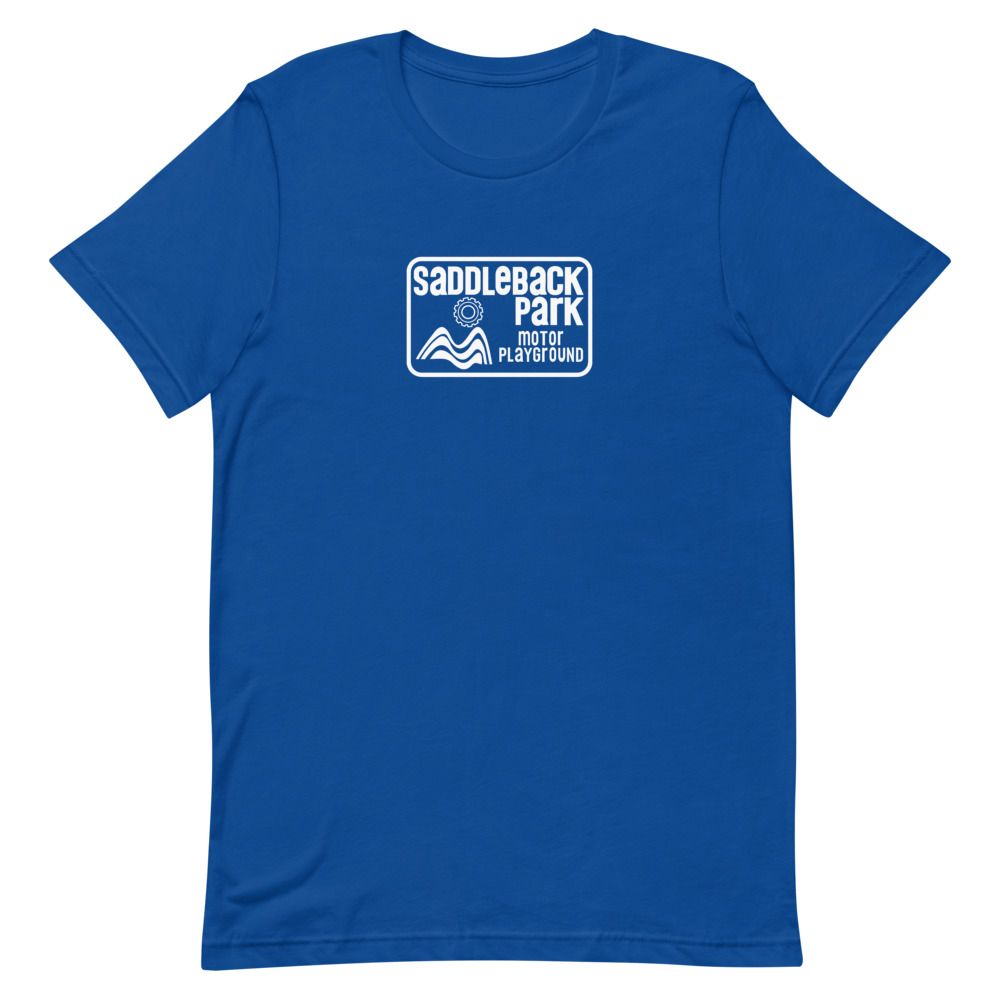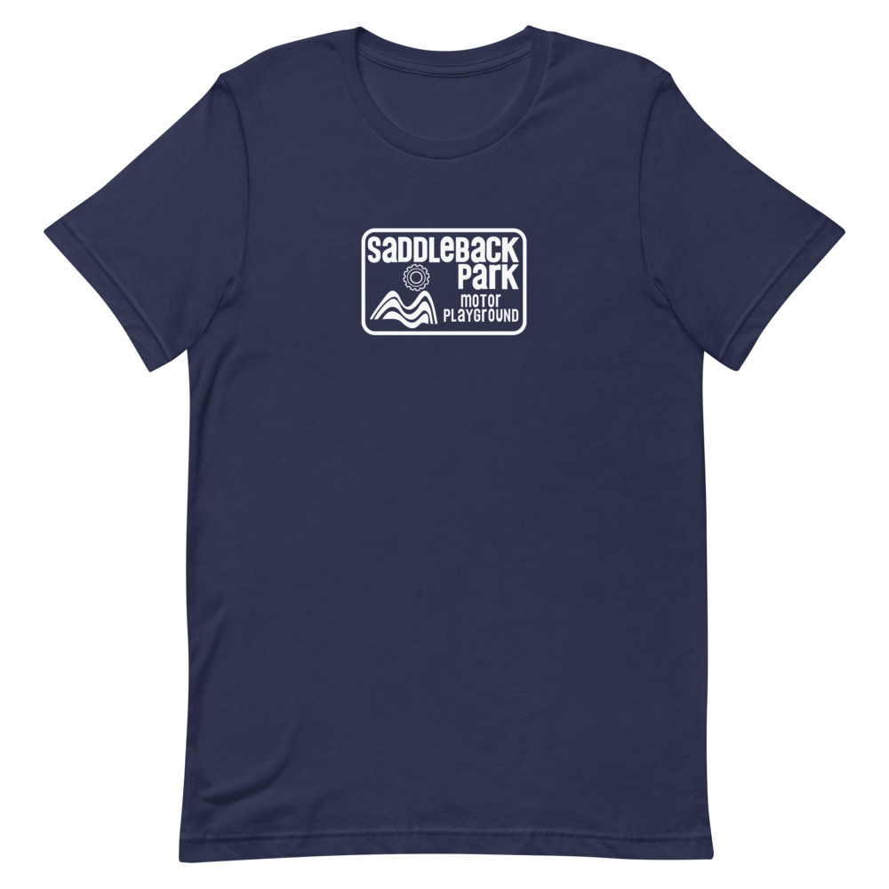 The classic Saddleback Park Logo in white ink. Truly a moto favorite.