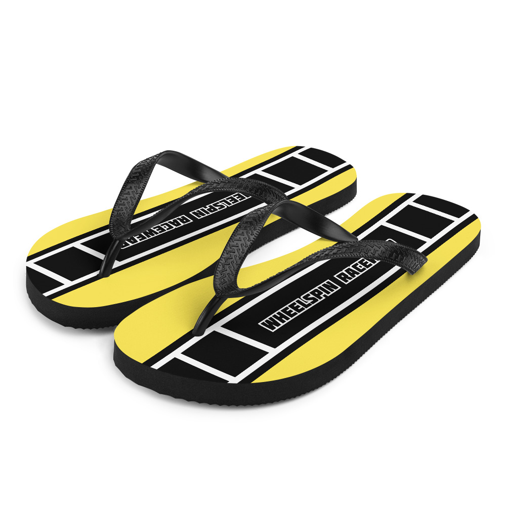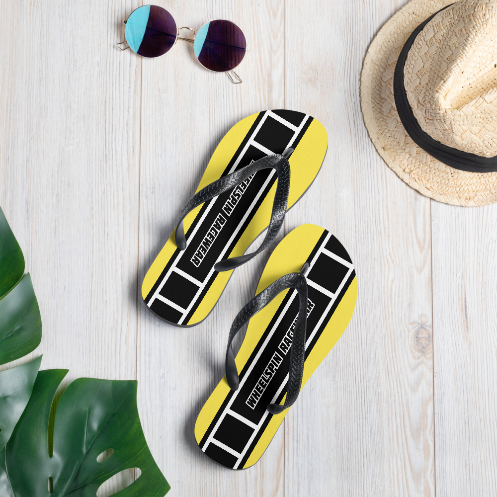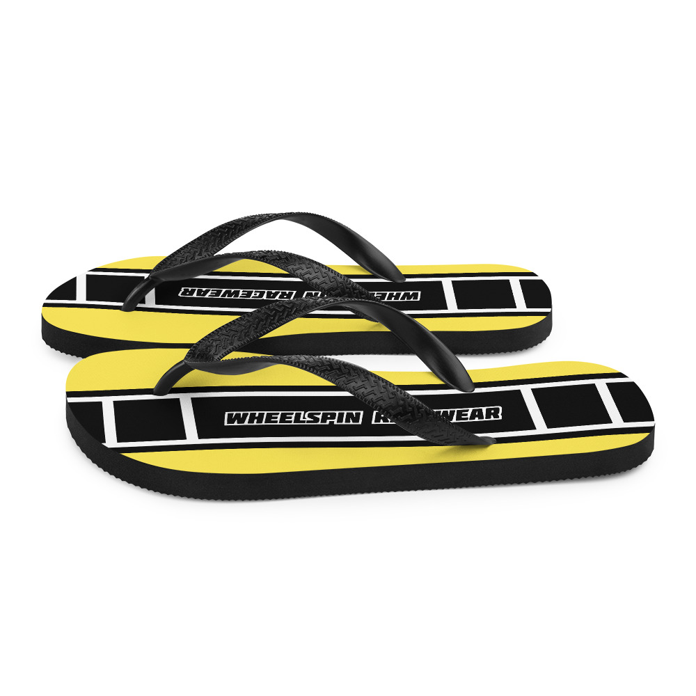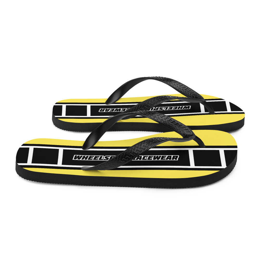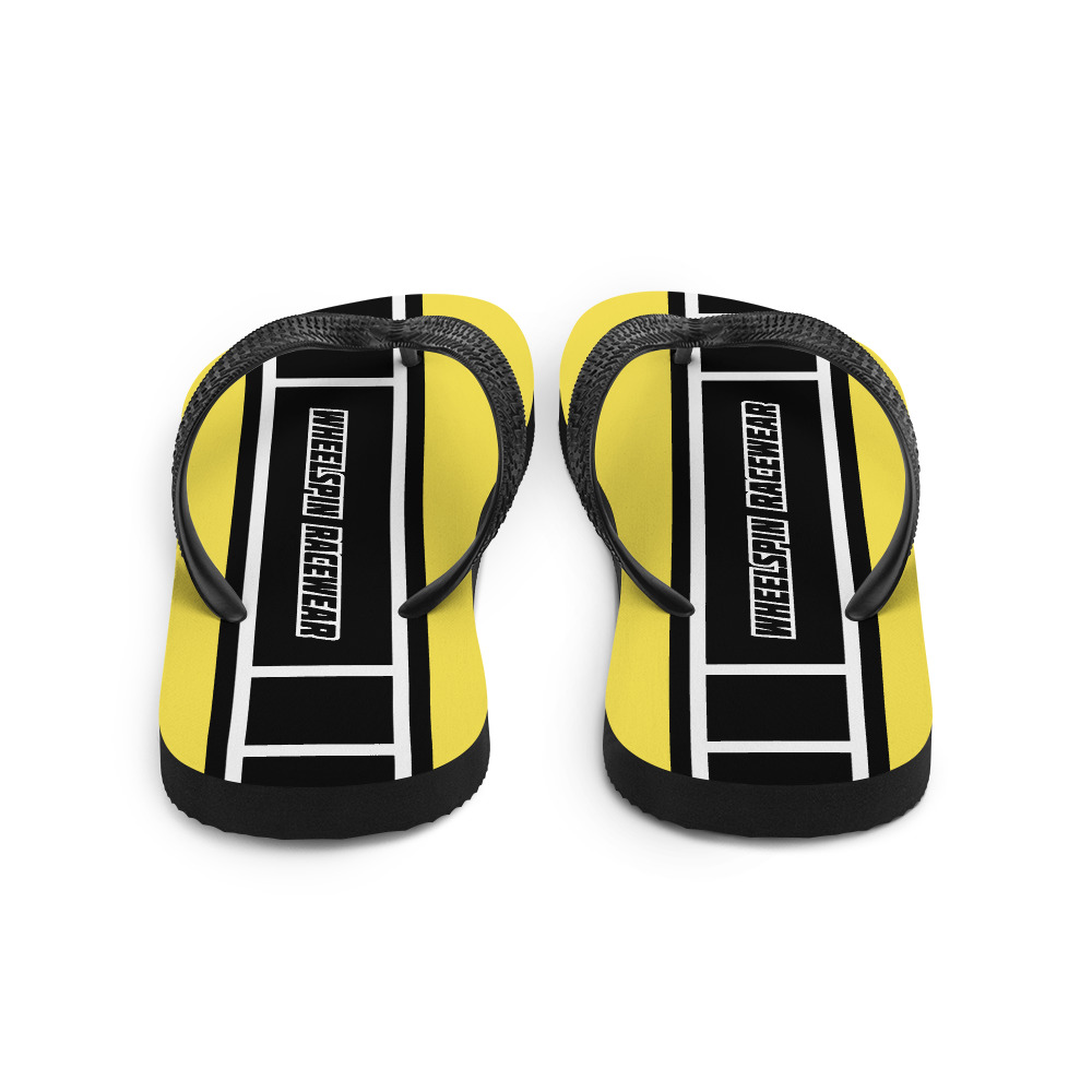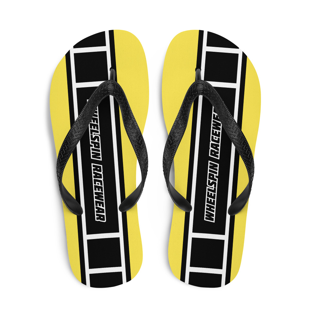 WS Yellow Flip-Flops with Black Motocross Racing Stripes