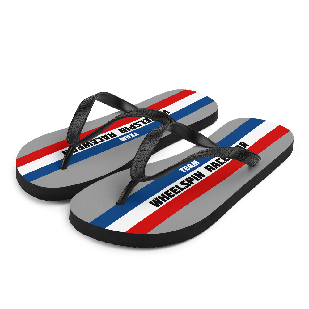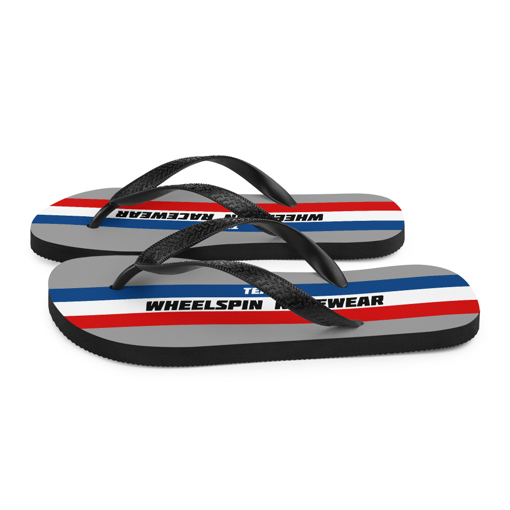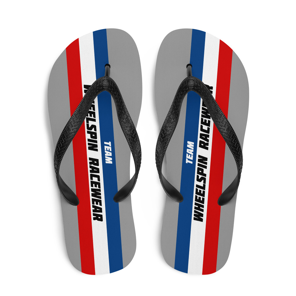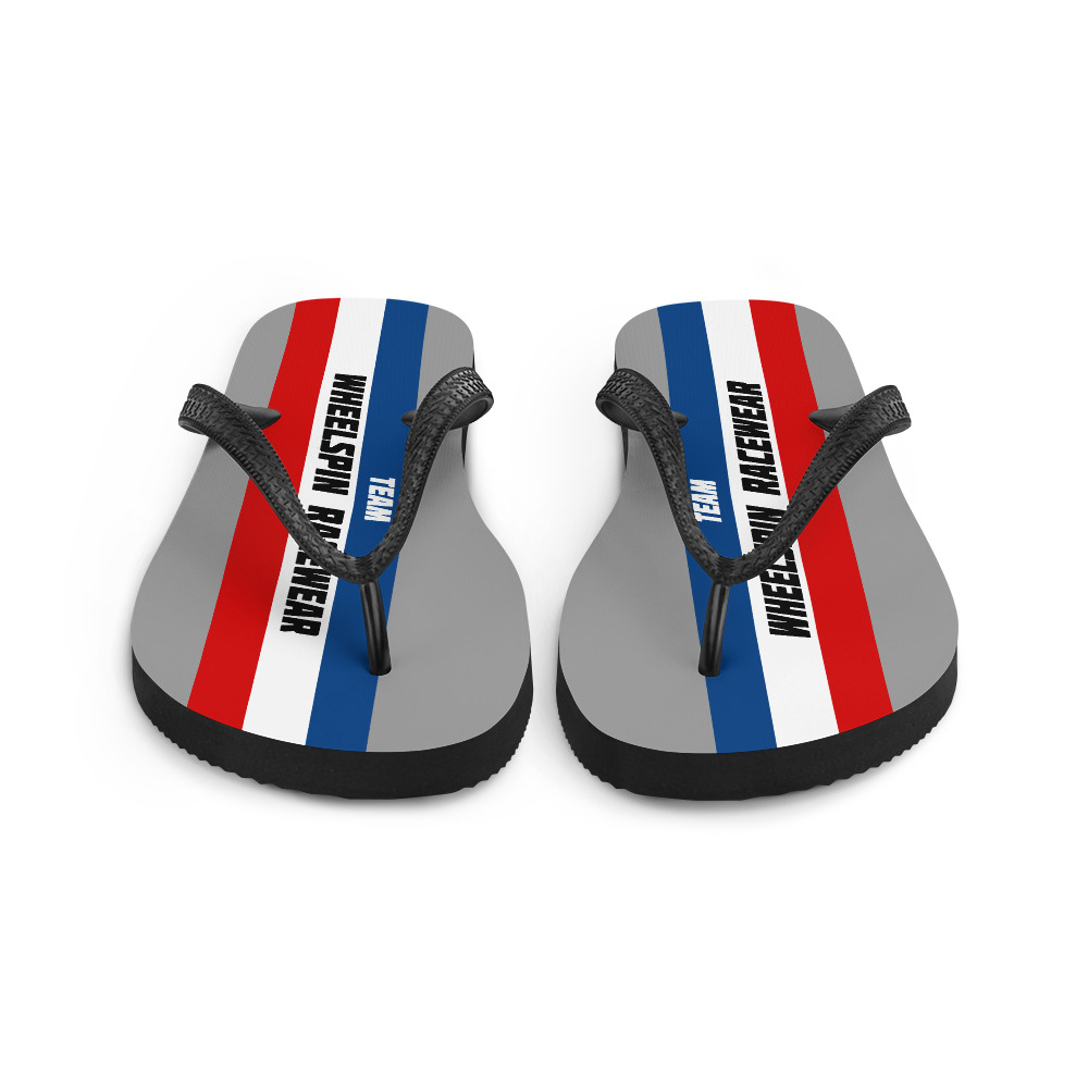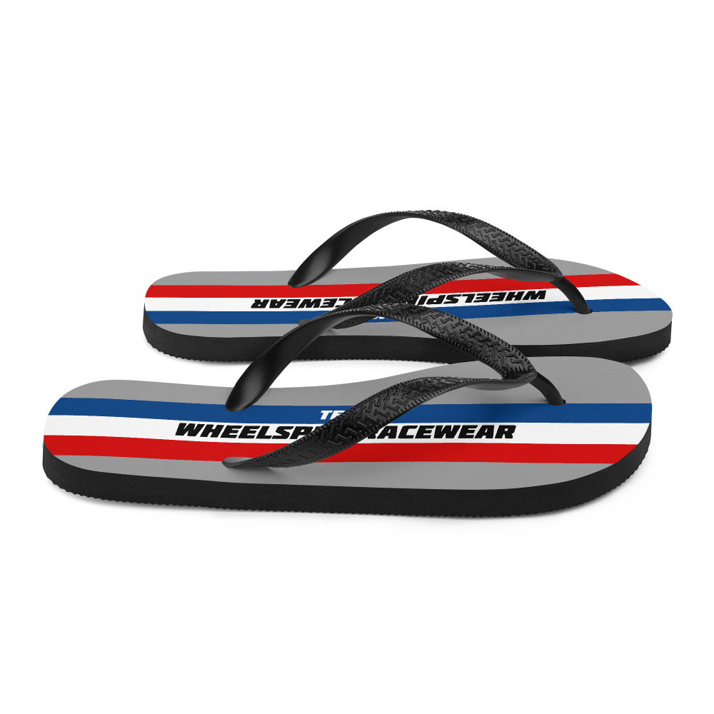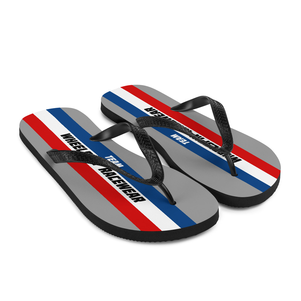 WS Works Bike Grey Flip-Flops with Red & Blue Motocross Racing Stripes
