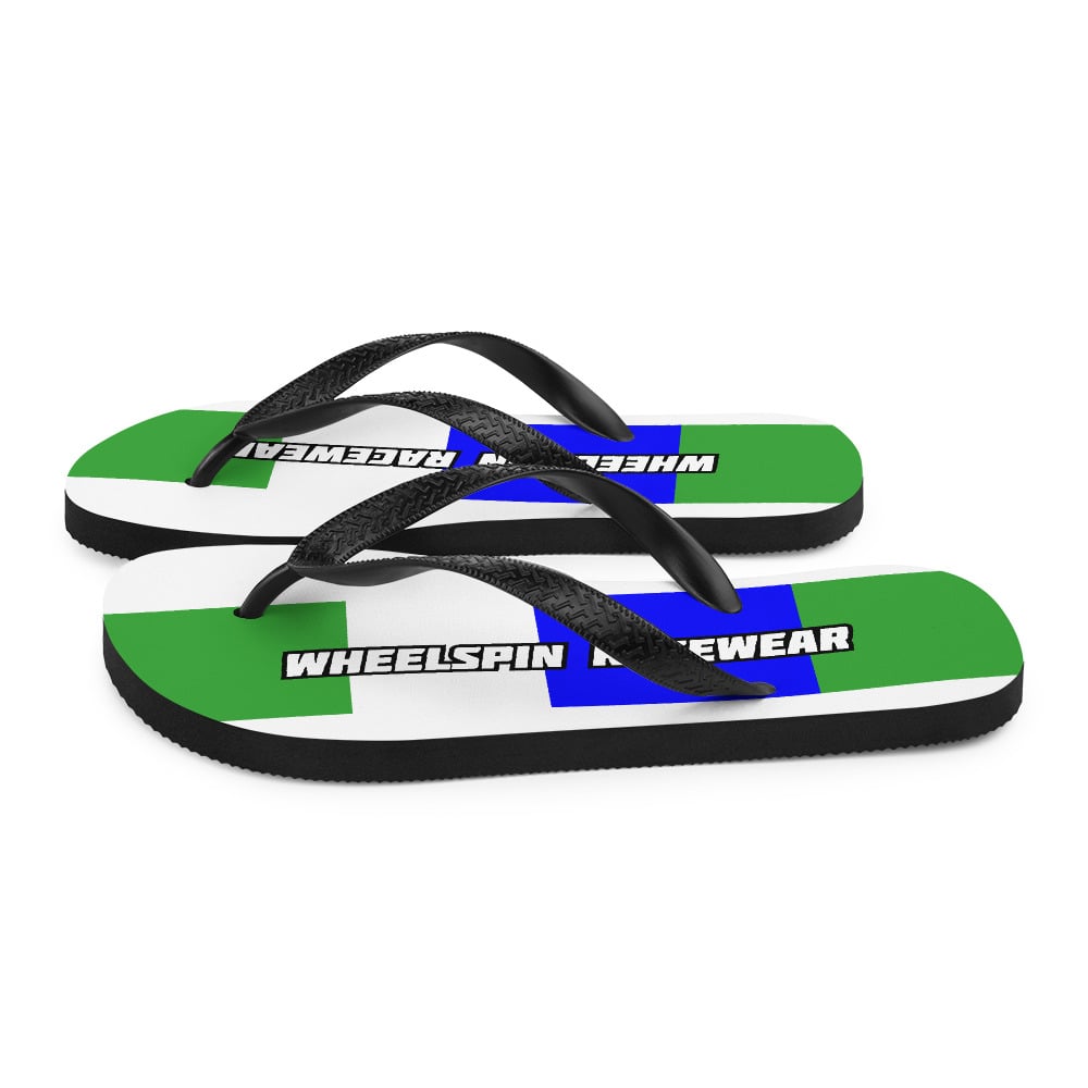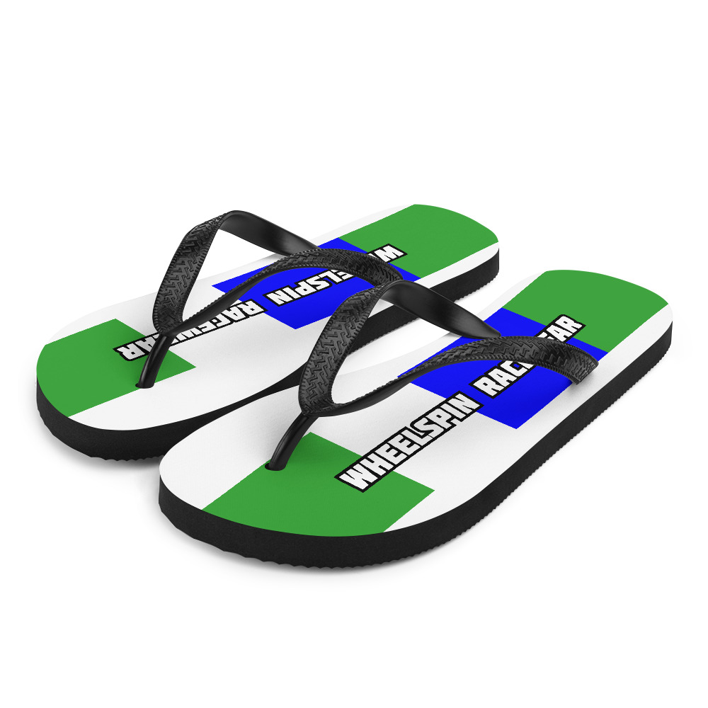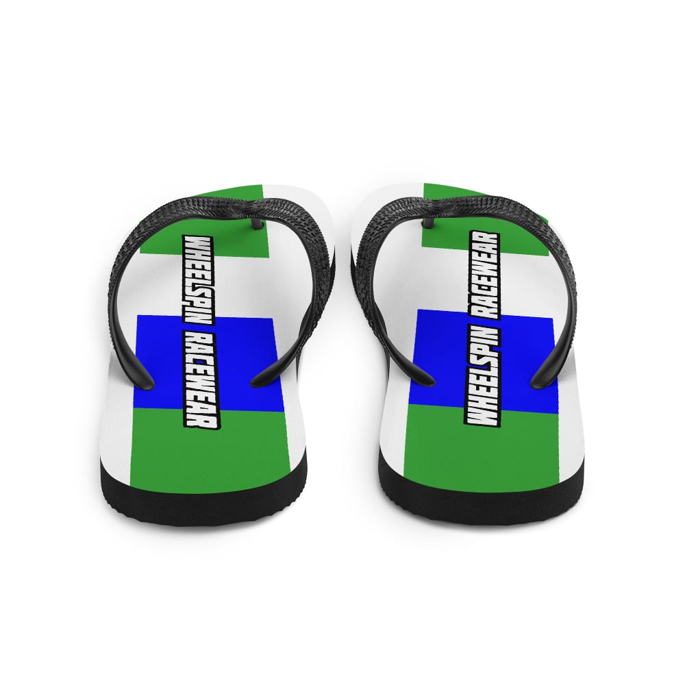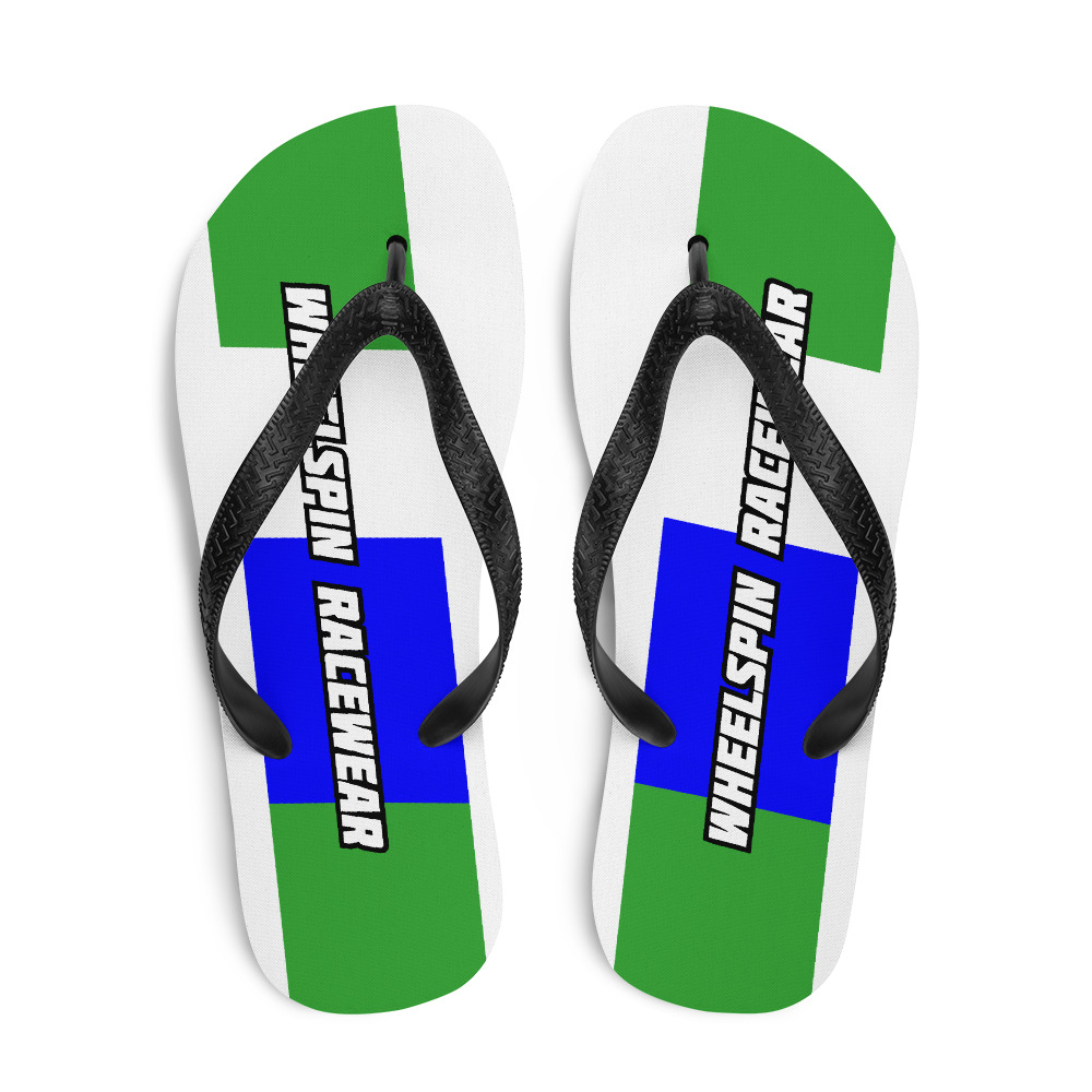 WS White Flip-Flops with Big Green & Blue Motocross Racing Stripes