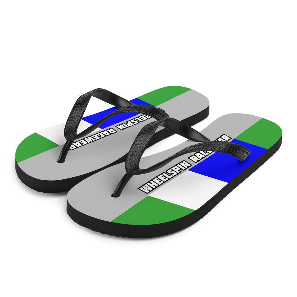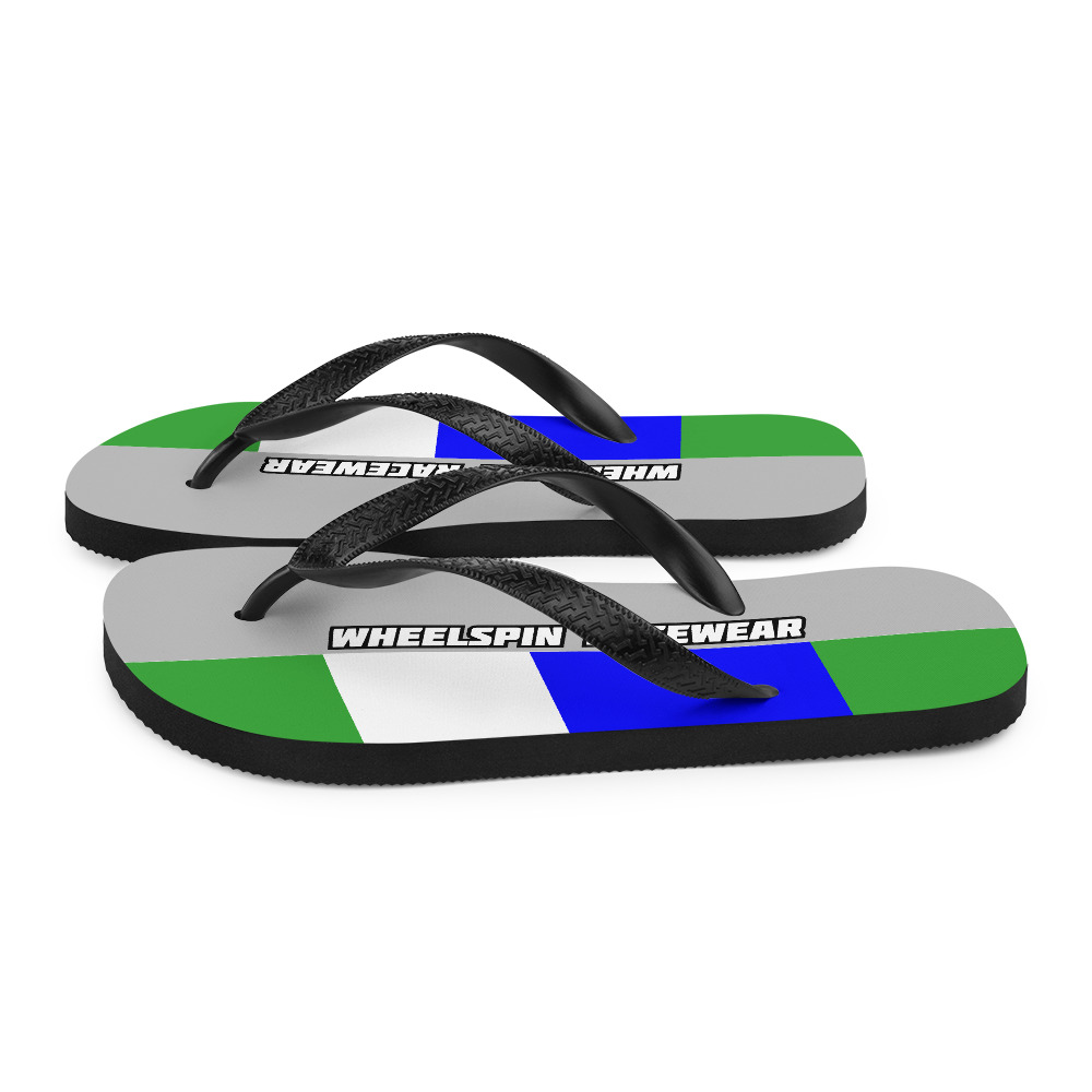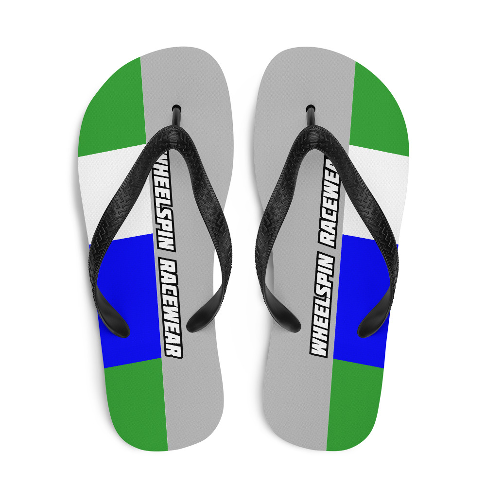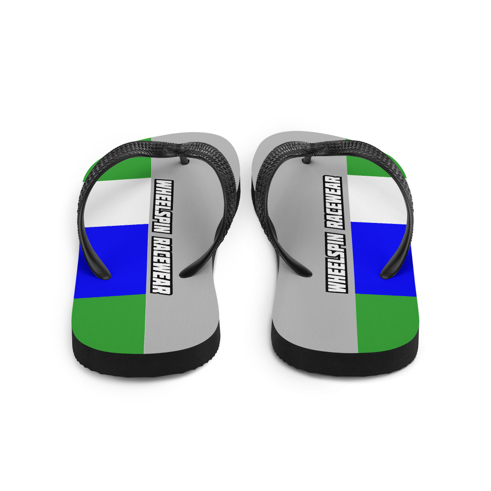 WS Works Bike Grey Flip-Flops with Green & Blue Motocross Racing Side Stripes