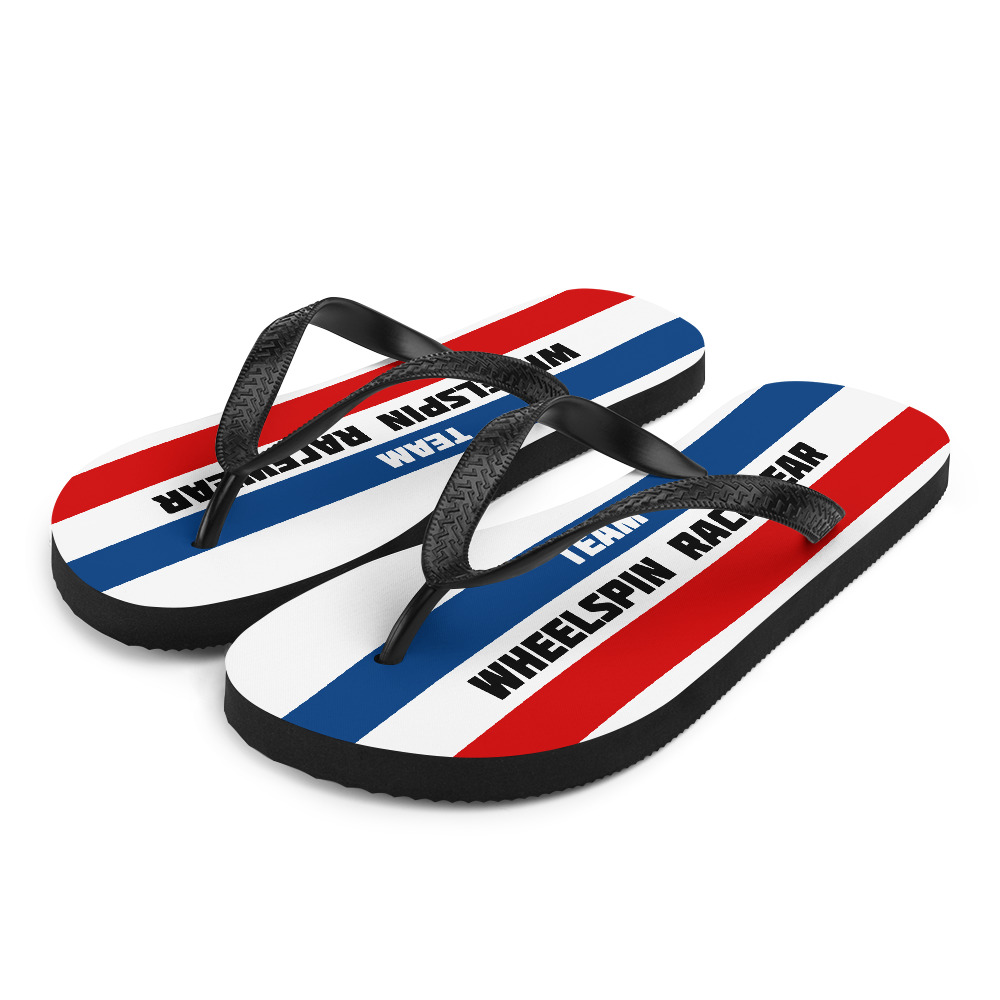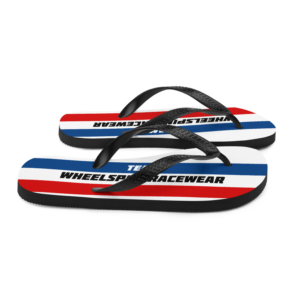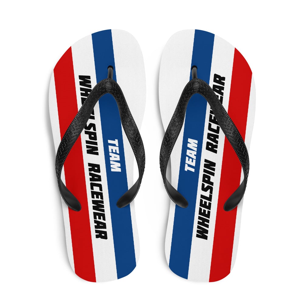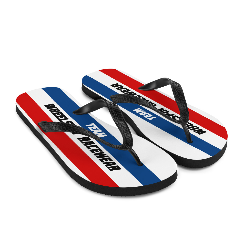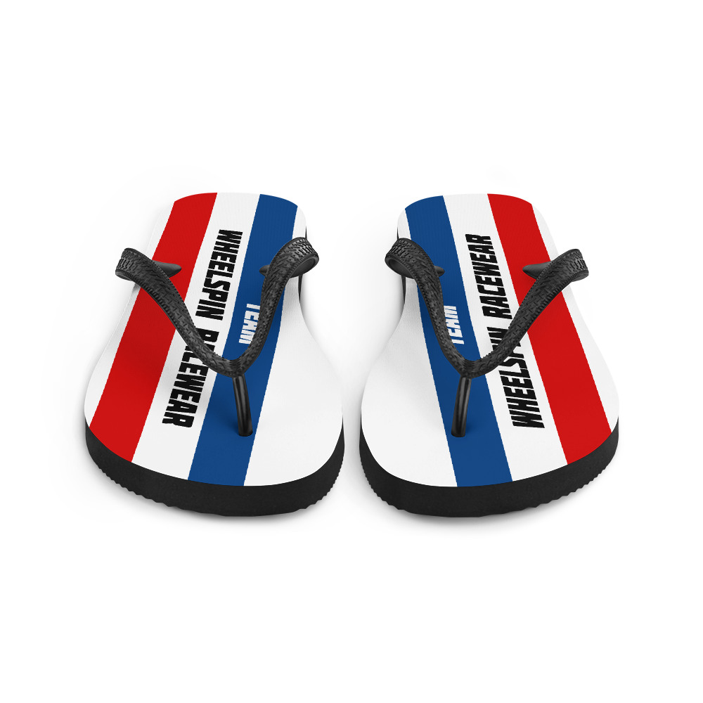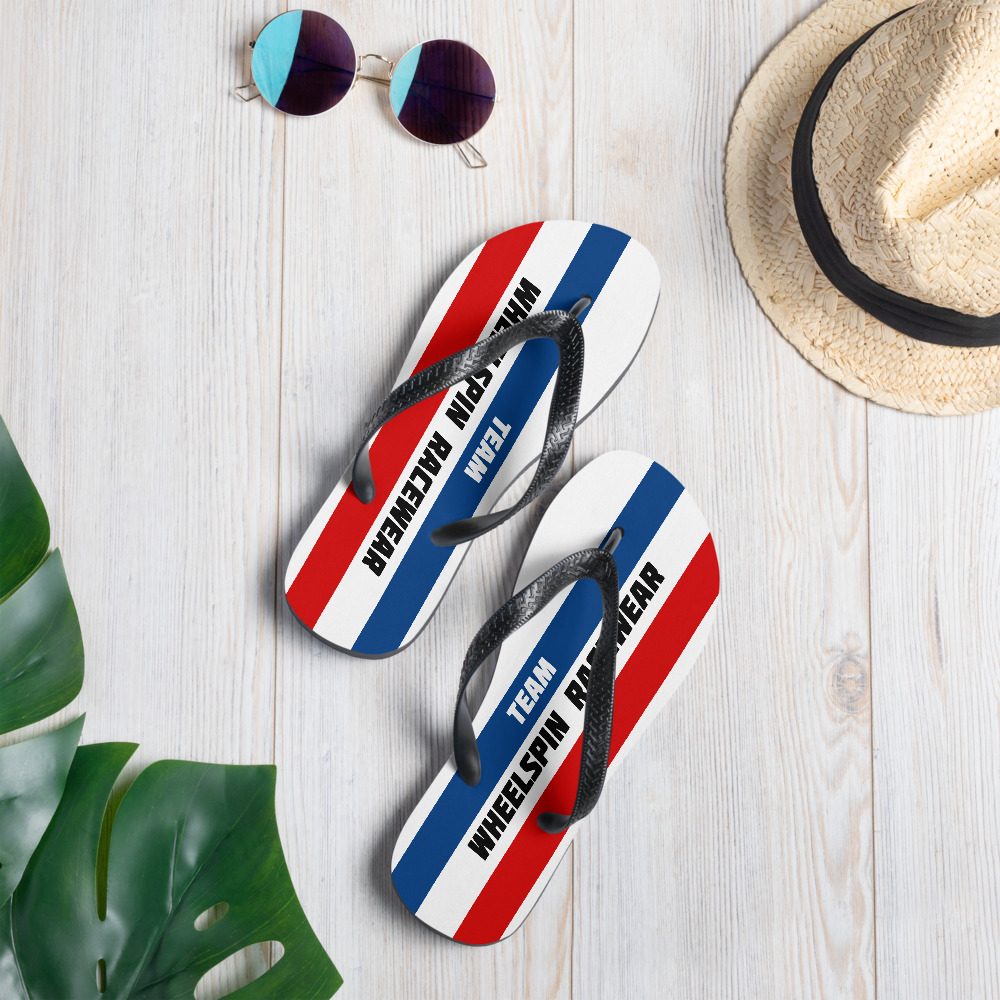 WS White Flip-Flops with Big Red & Blue Motocross Racing Stripes