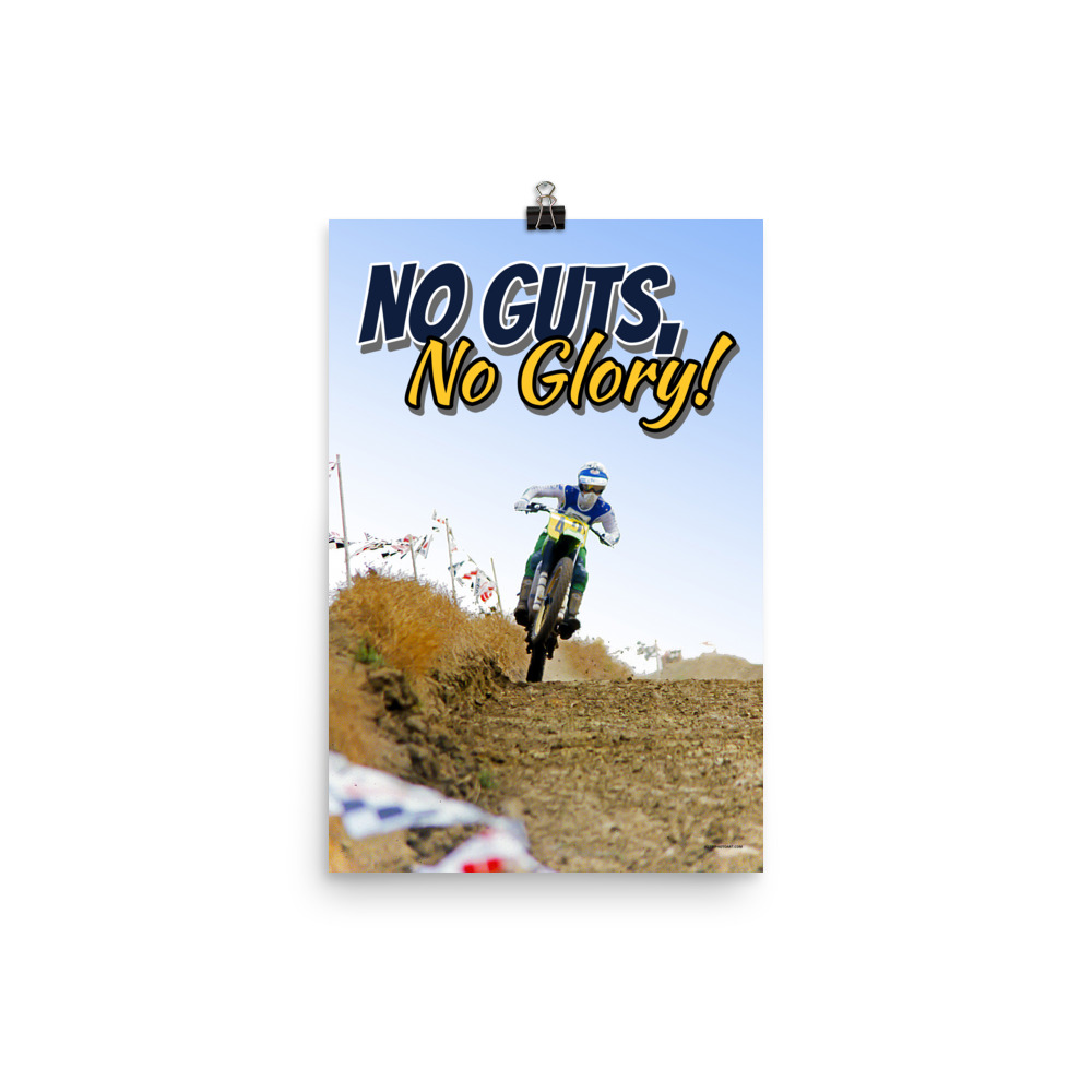 Upgrade your man cave or garage décor with cool retro motocross racing themed posters. Image of Jeff Ward pushing hard on his works 500 Kawi during the 1982 500 USGP at Carlsbad.