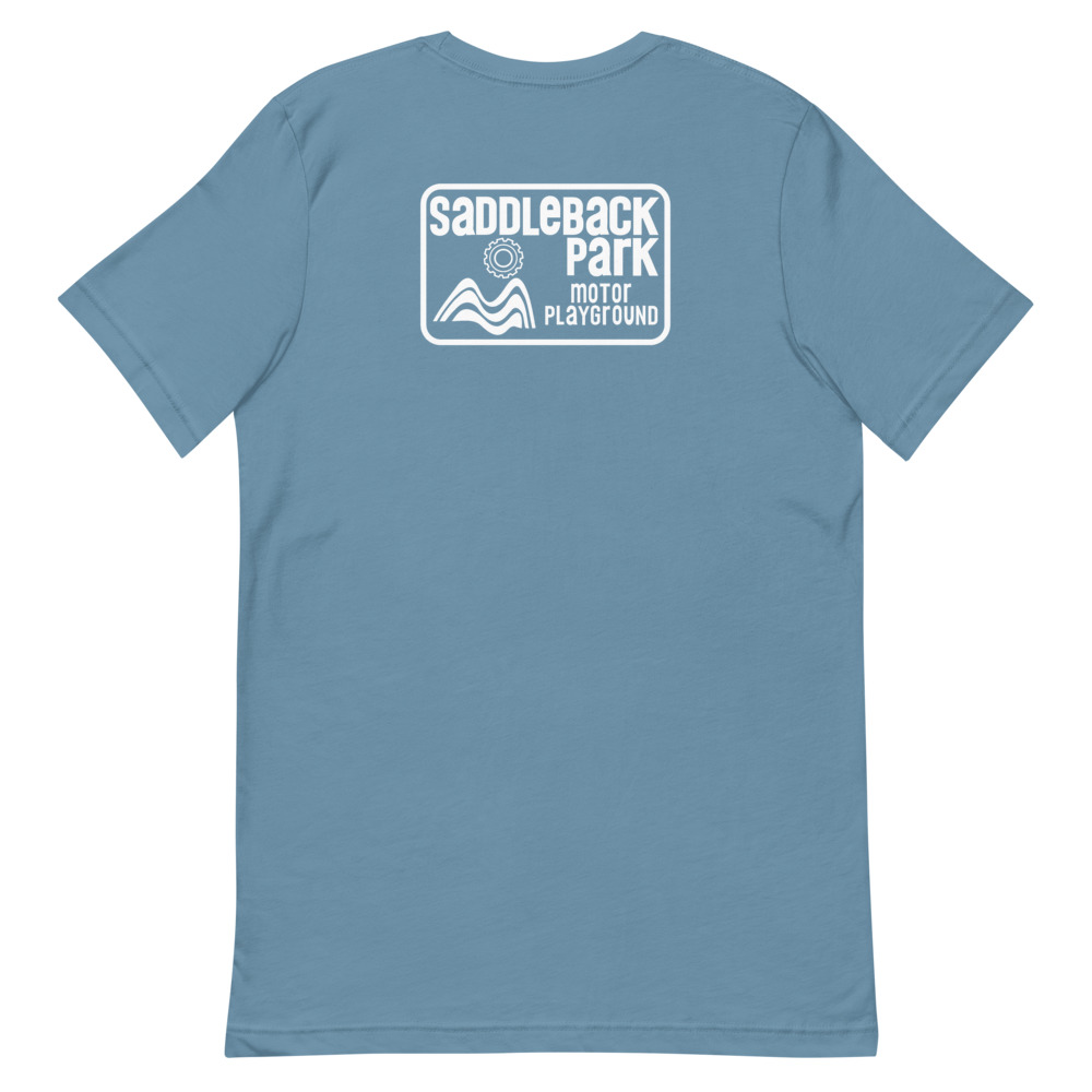 Small Rolling Hills Logo on Front with the Large Saddleback Park Logo on the Back - Relive the Glory Days of Riding and Racing at Saddleback Park.