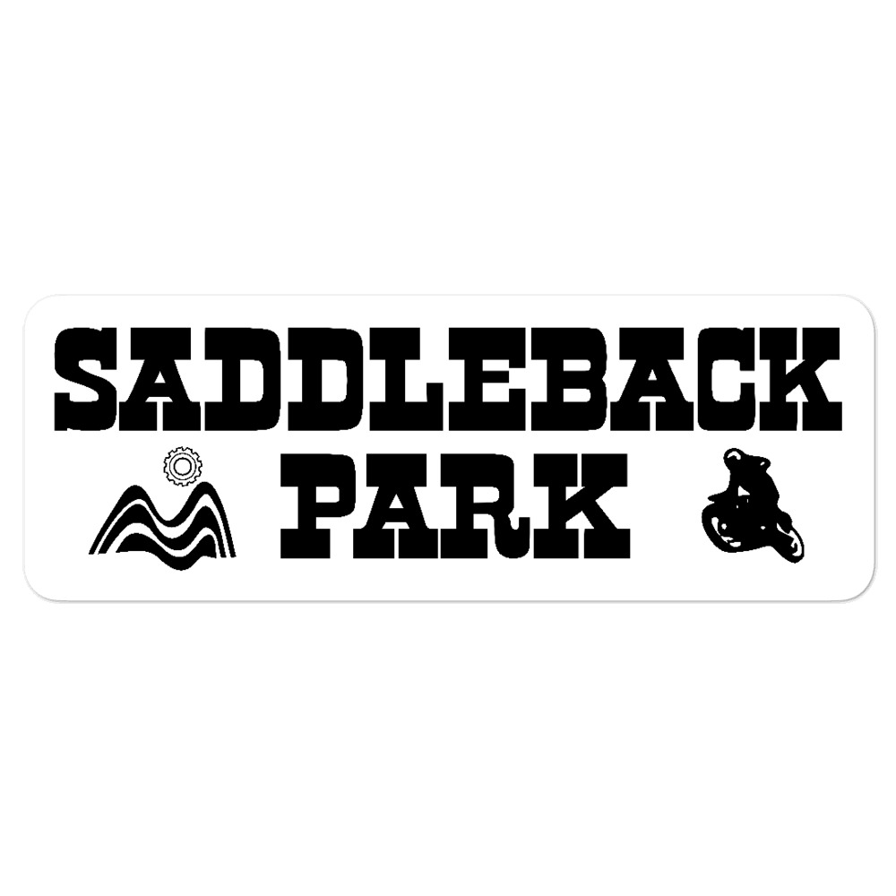 Classic SADDLEBACK PARK Banner Stickers - Black Lettering on White base.