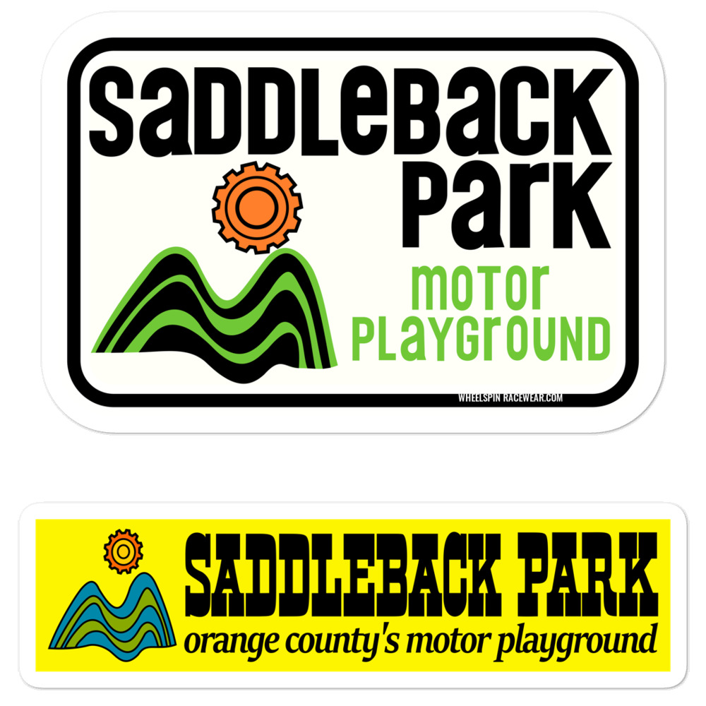 Retro Saddleback Park Classic Logo Designs in a Two Moto Sticker Pack.