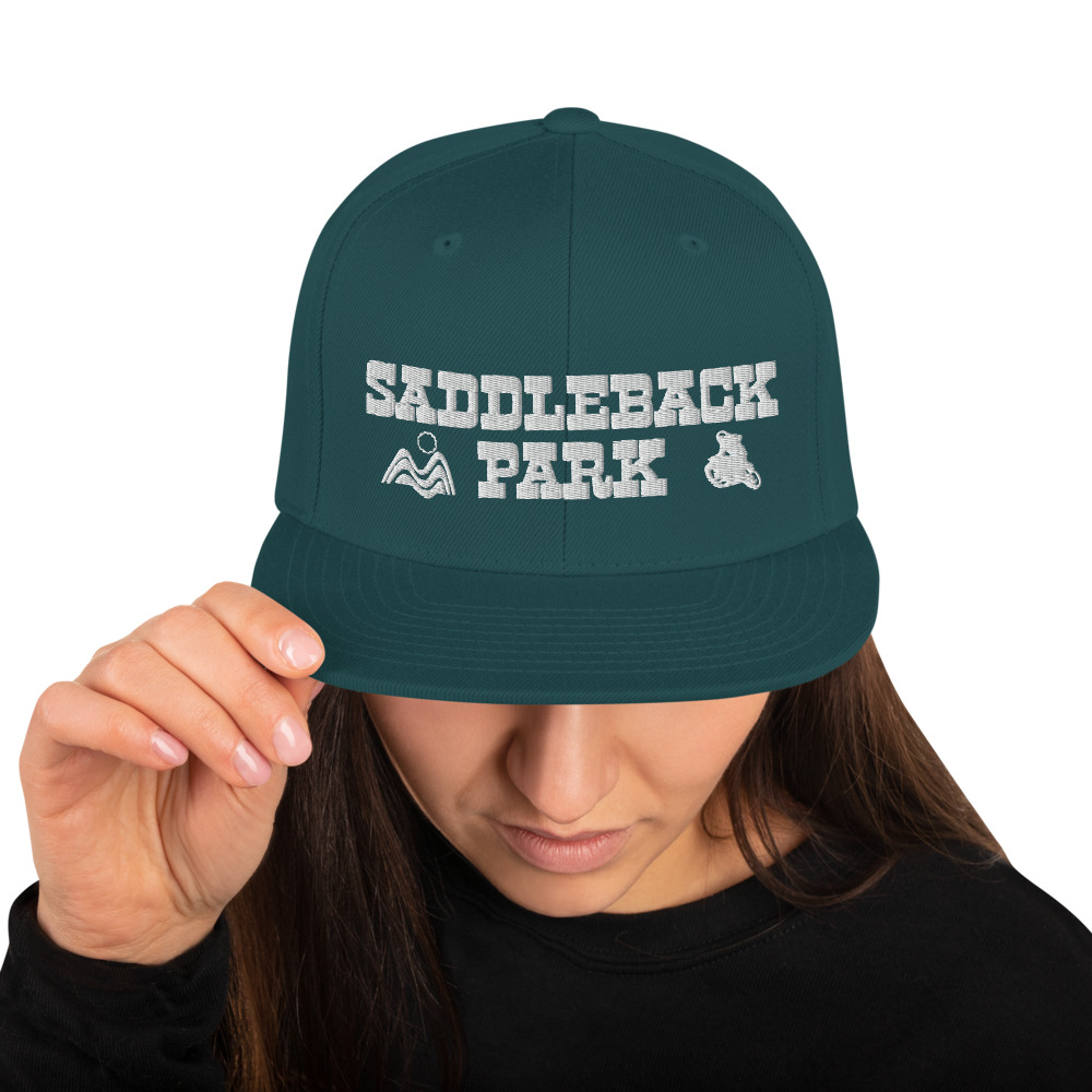 Saddleback Park Western Letters Embroidered White on Snapback Hat (DK)