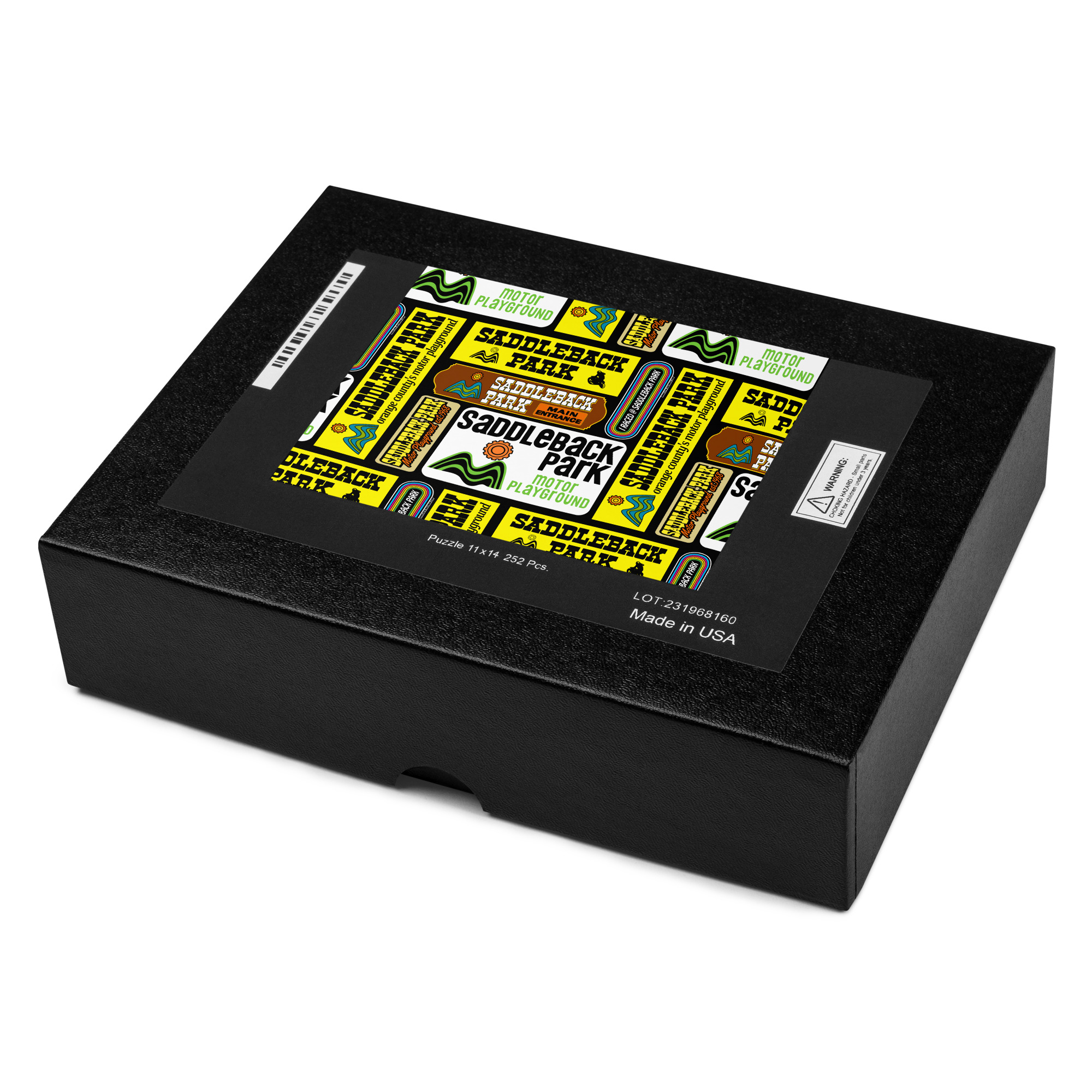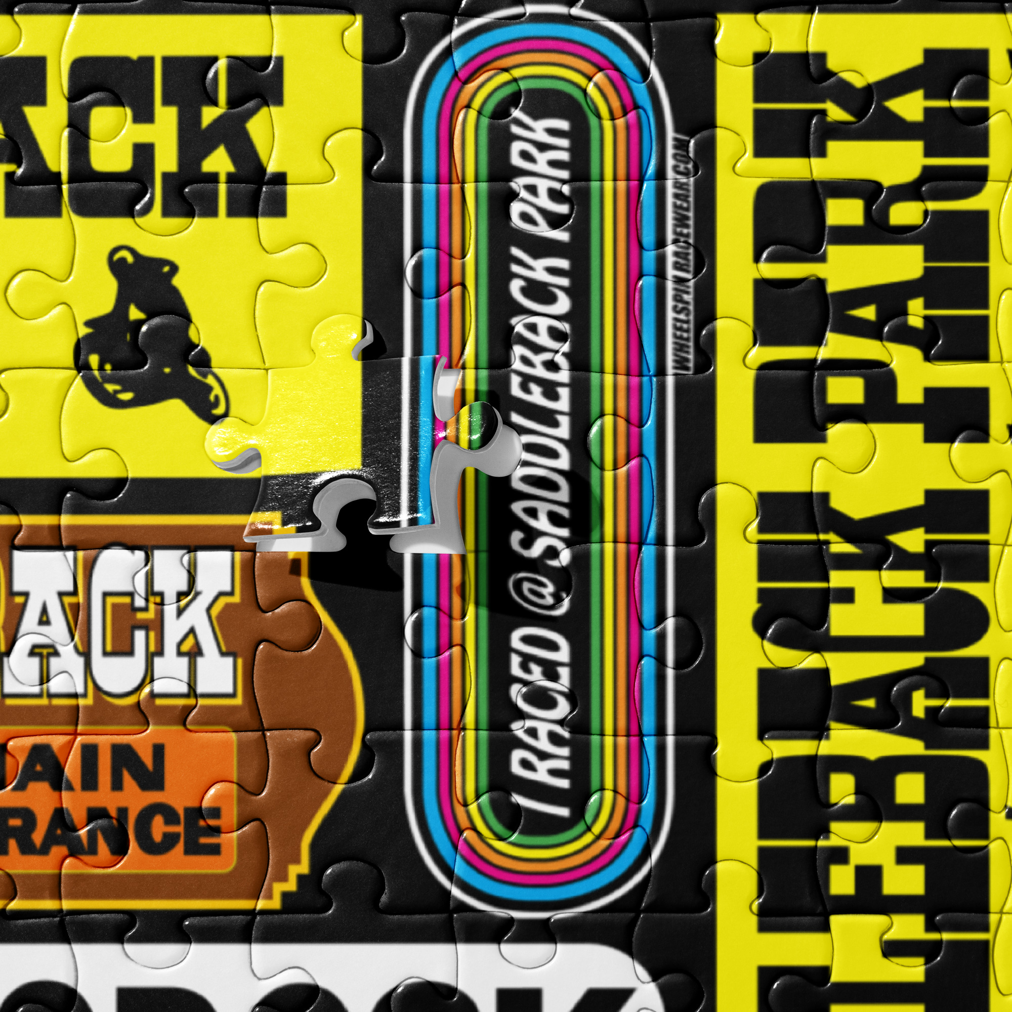 Classic Saddleback Park Logos create a challenging puzzle for all ages of racing fans. Relive the glory days of riding and racing at Saddleback Park Motor playground.
