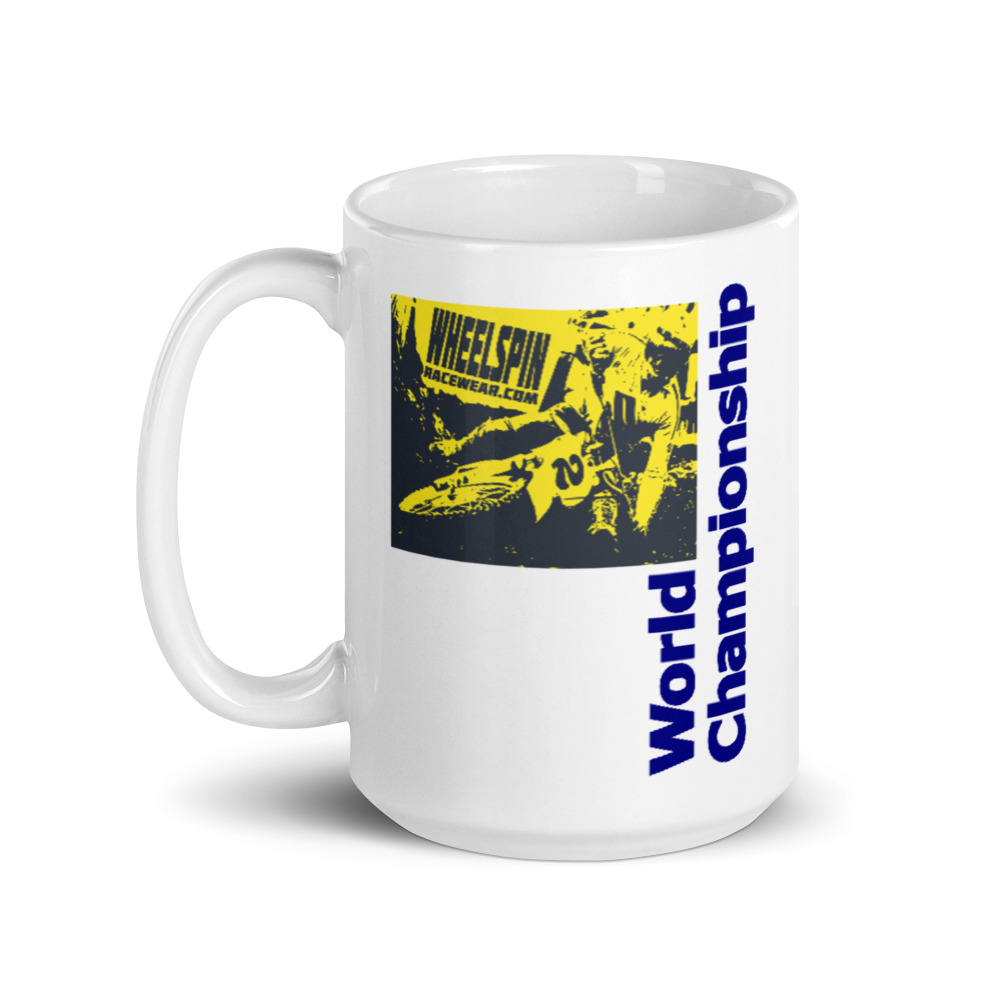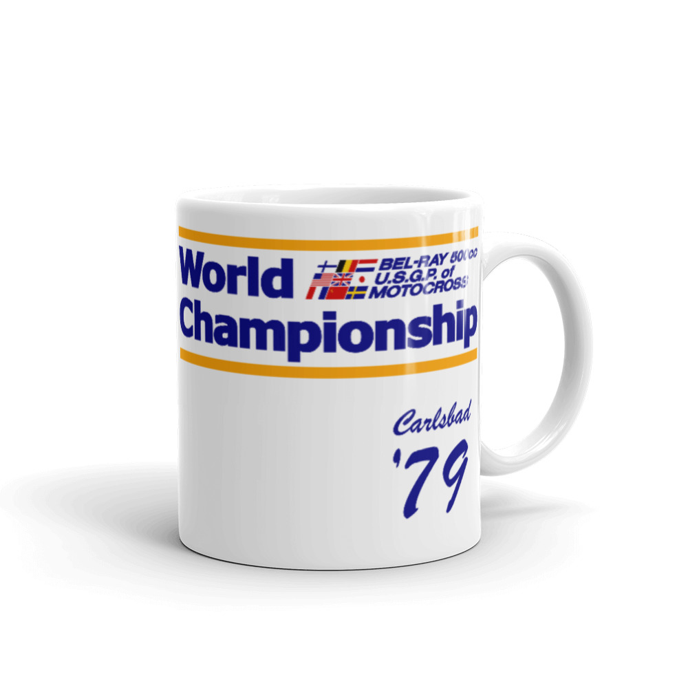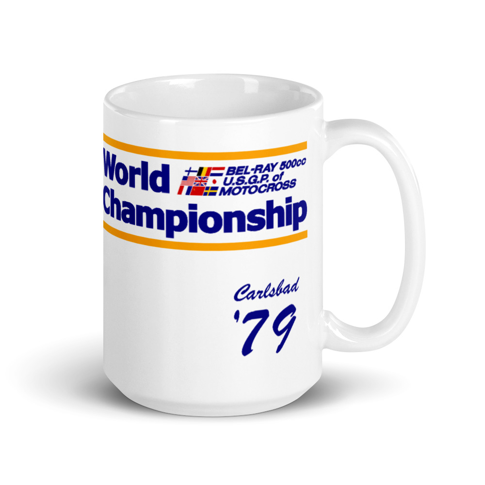 Classic graphics from the 1979 500cc USGP World MX Championship on your coffee mug. Relive the biggest motocross event with every sip of your morning beverage.
