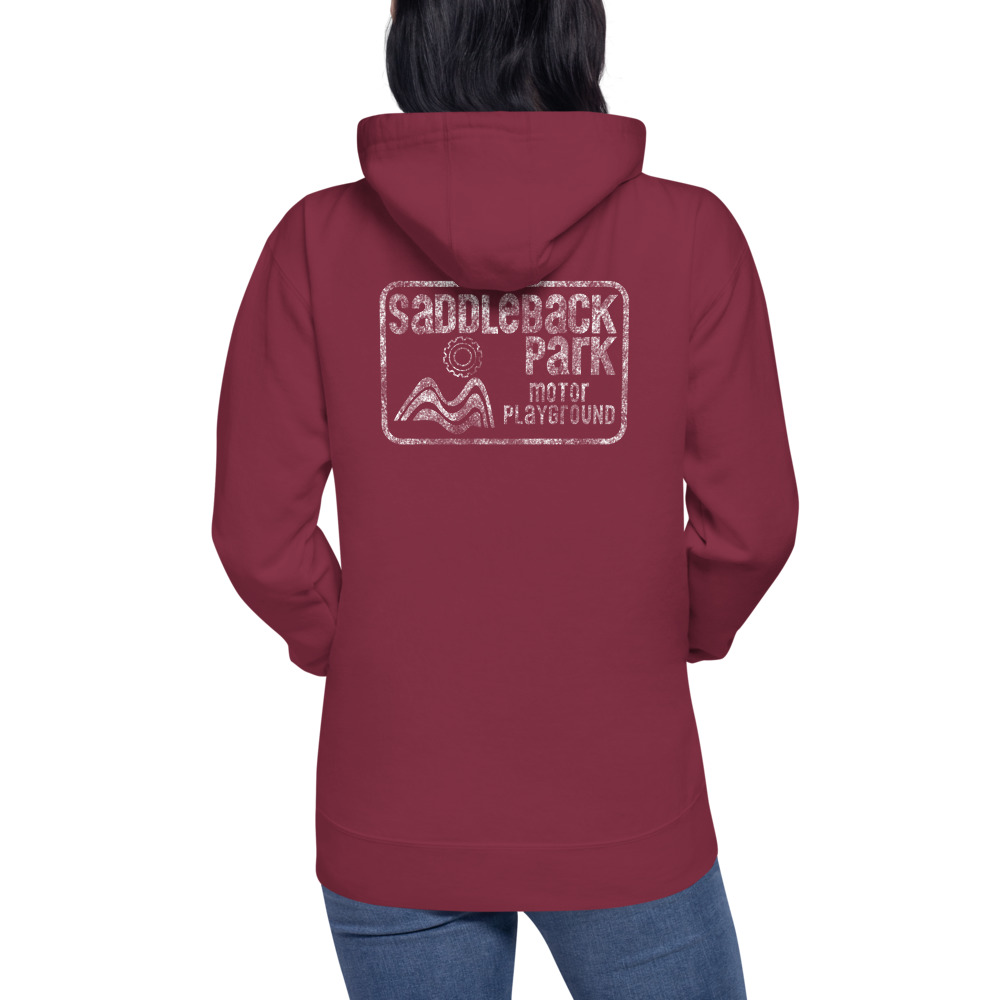 Saddleback Park Faded Logo Premium Unisex Moto Hoodie (F & B-White ink)