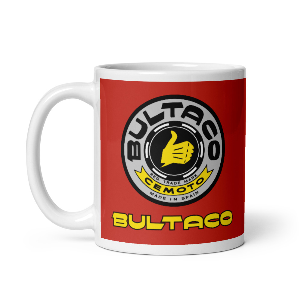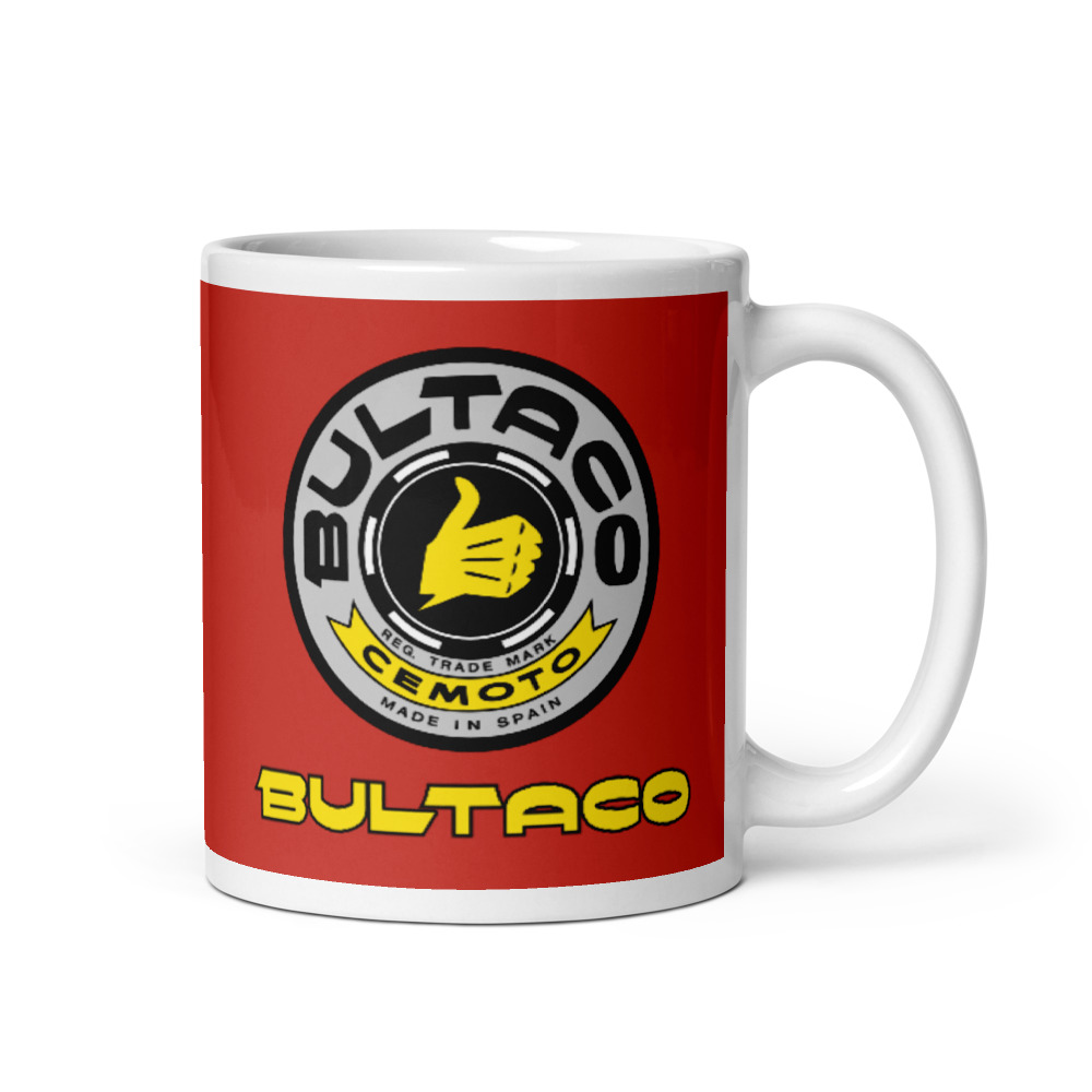 Enjoy your favorite beverage with a Red Bultaco Emblem Moto Mug.