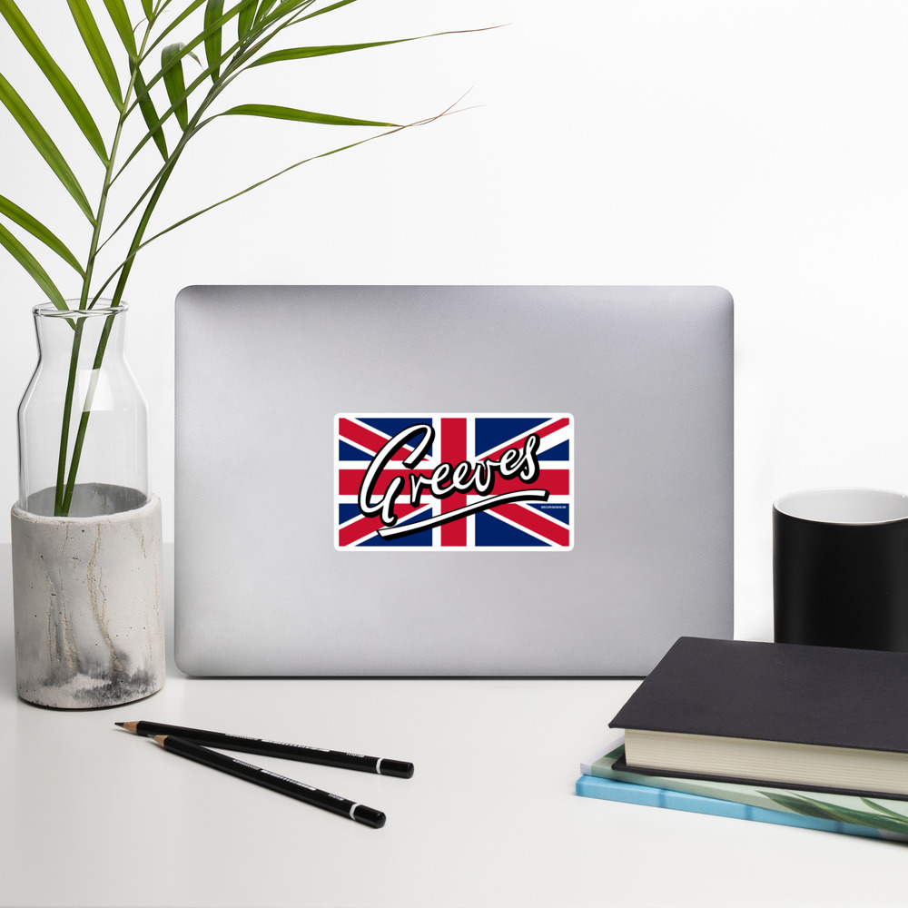 Union Jack flag with the iconic Greeves title logo. Perfect for any vintage racing fan.