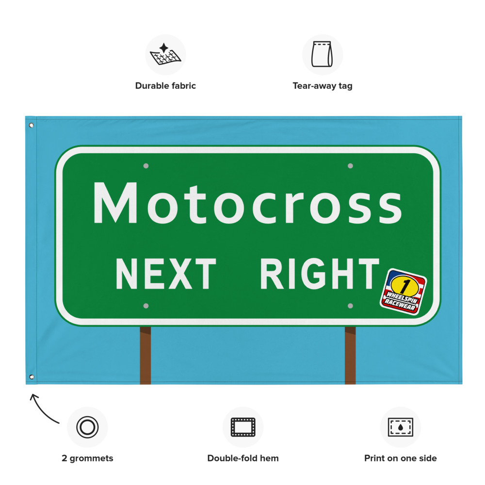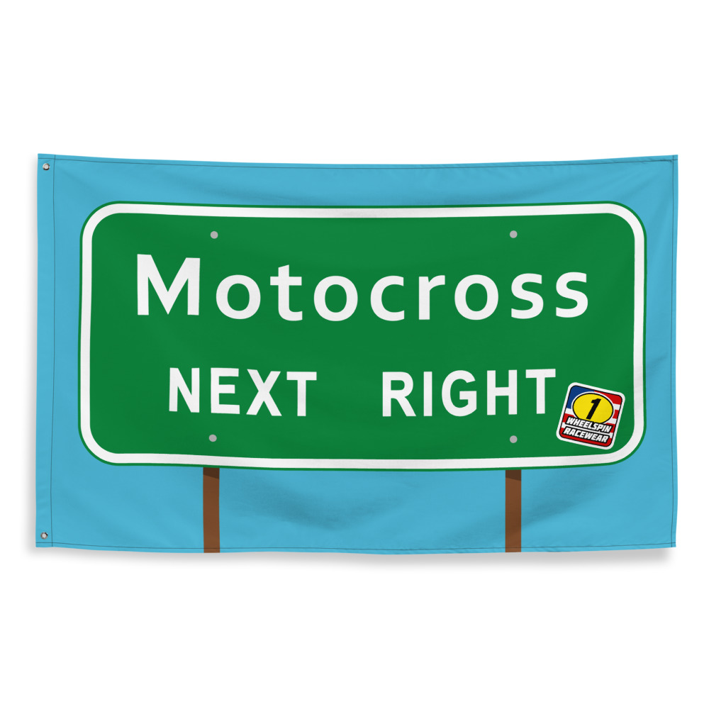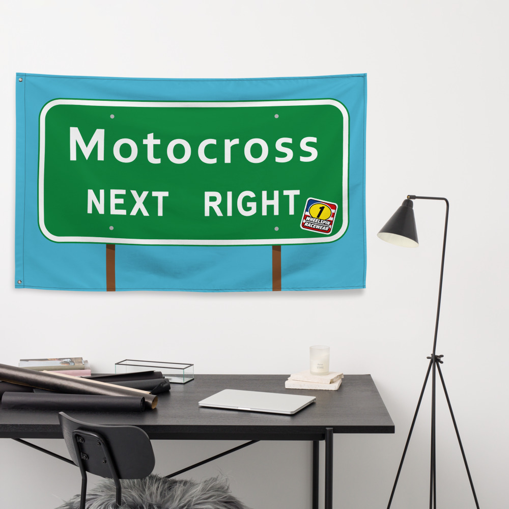 Motocross Next Right Freeway Sign Moto Flag from the iconic Carlsbad Raceway days. Those whom have been there, know the importance of that California freeway sign!