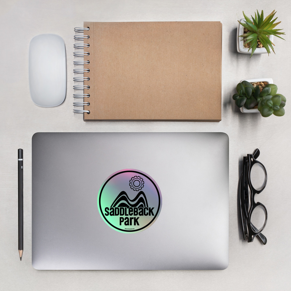 Cool retro holographic style sticker with the Vintage Saddleback Rolling Hills Logo.