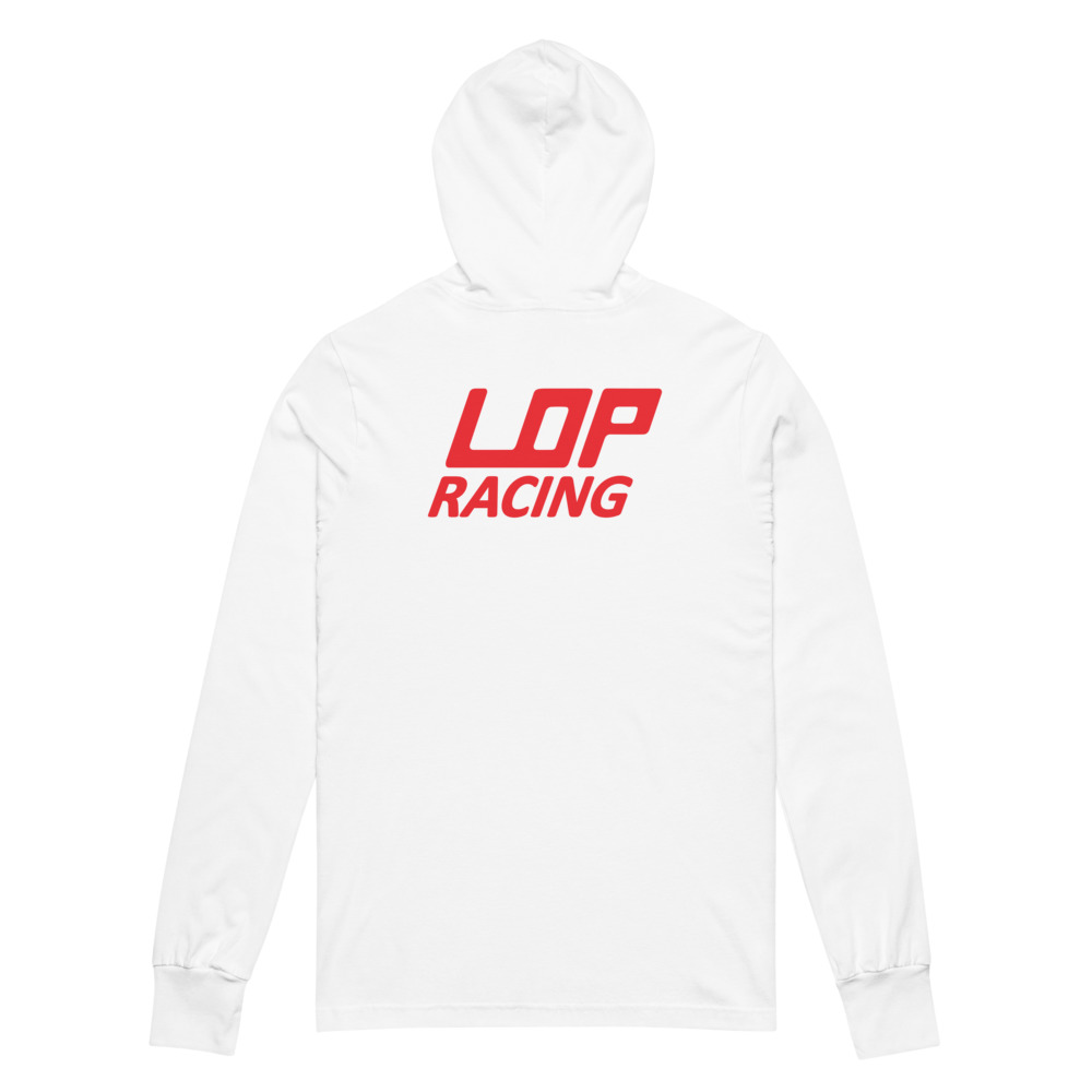 LOP RACING graphics front & back on a lightweight Moto Hoodie.