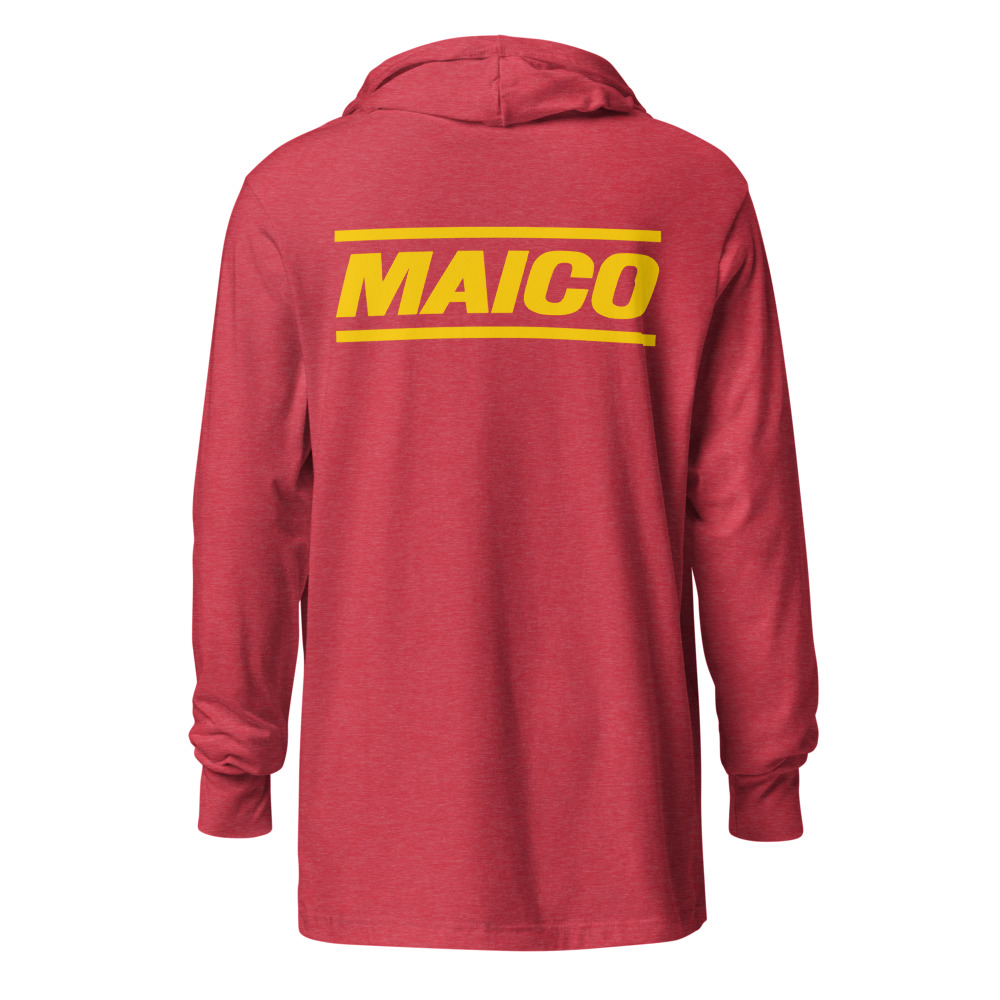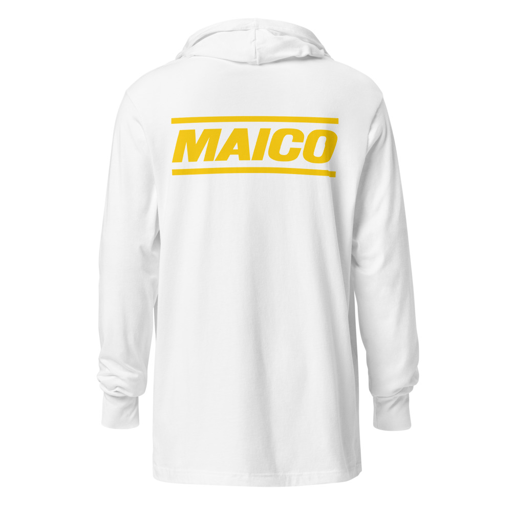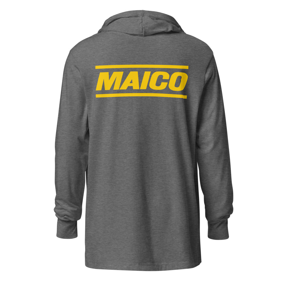 Classic MAICO Crest on front with bold, gold MAICO logo on back. Perfect lightweight Moto Hoodie to wear trackside while checking out the winning racing lines.
