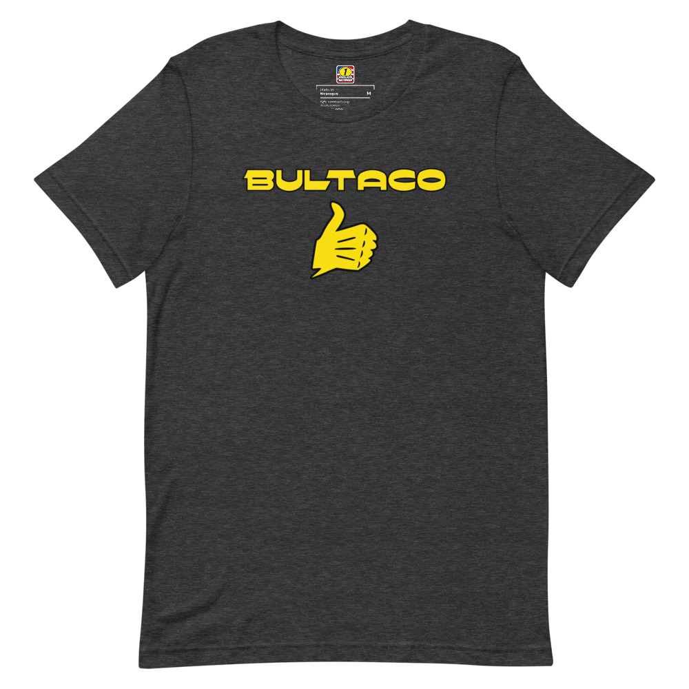 Classic Bultaco Title with Thumbs-up graphic on front. Perfect for any racing fan!