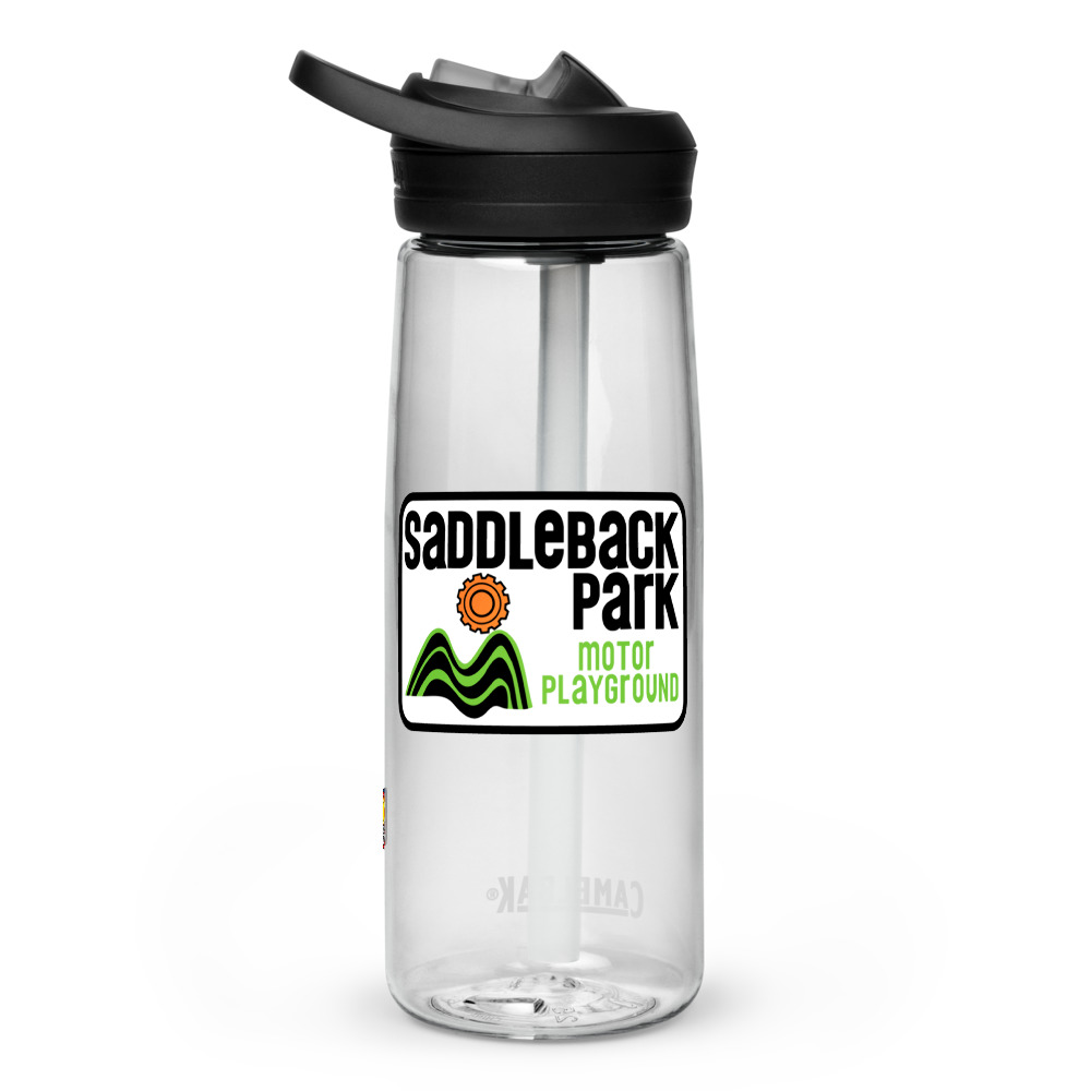 Relive the glory days of riding and racing at Saddleback Park Motor Playground with every sip of your CamelBak Sports Bottle printed with classic Saddleback Park logos.